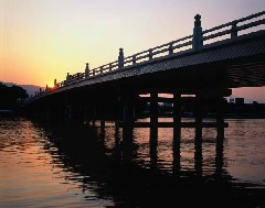琵琶湖の南部から流れ出る瀬田川にかかる橋。日本三古橋の一つとして知られ、瀬田橋や瀬田の長橋として古くは日本書紀にも登場する。現在の橋は昭和54年(1979年)に架け替えられたもので、旧橋の擬宝珠が付けられるなど、古風な趣が残されている。